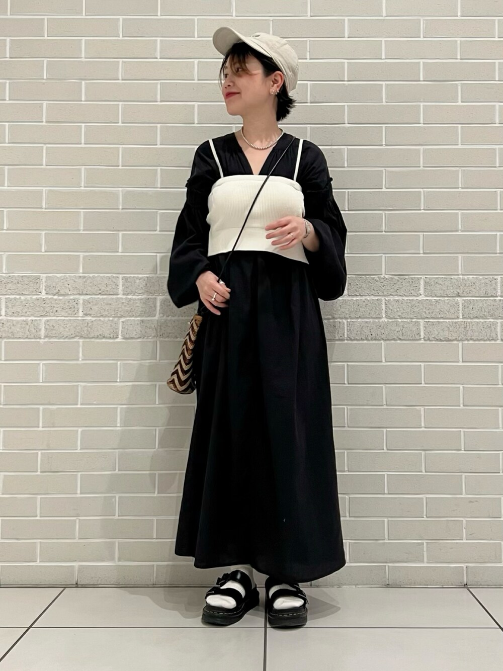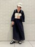Hirom(SALON adam et rope' 新宿NEWoMan)のワンピース「【手洗い可能】コットン麻ブレンドボリュームスリーブVネックギャザーワンピース」を使ったコーディネート