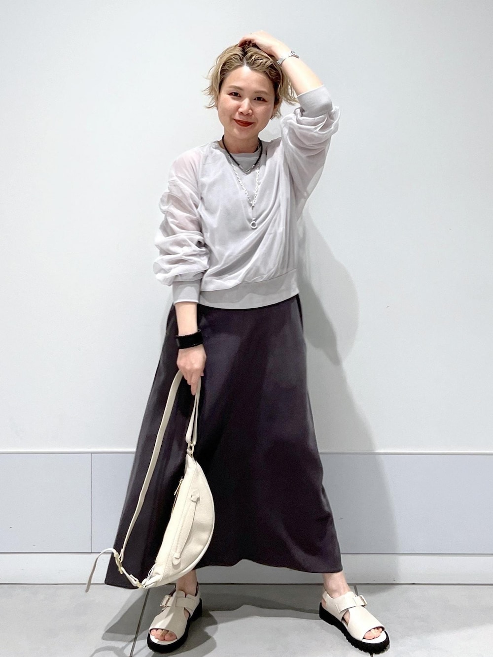 身体をふんわりと包み込んでくれる 柔らかなシアー素材に軽やかなチュールを重ねたデザインニット。 華奢見えするのも嬉しいポイントです♡ 首まわりや裾はリブ仕様になっていて、 カジュアルなデザインなのに女性らしさがあって、 これ1枚でミックススタイルが楽しめます♫ アクセサリー:スタッフ私物