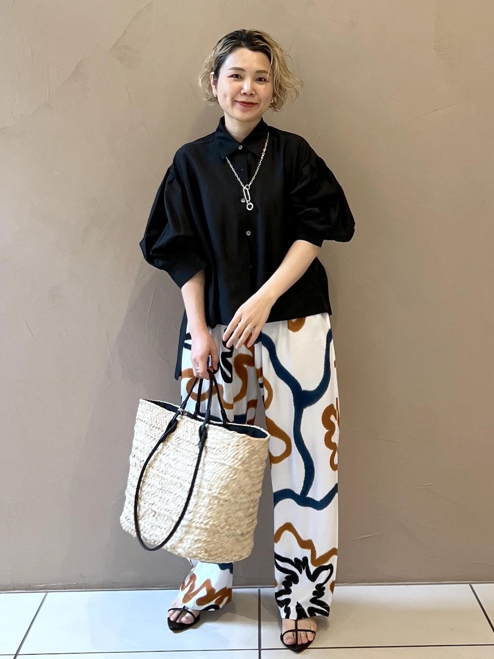 ボリュームスリーブや前後差のある着丈などニュアンスのあるシルエットで サラッと着るだけで小慣れた雰囲気が出せるシアーブラウスです♡ ツヤのある素材感が大人な印象♪ 程よくシアー感なので 同系色のインナーを合わせれば通勤にもオススメです! アクセサリー:スタッフ私物