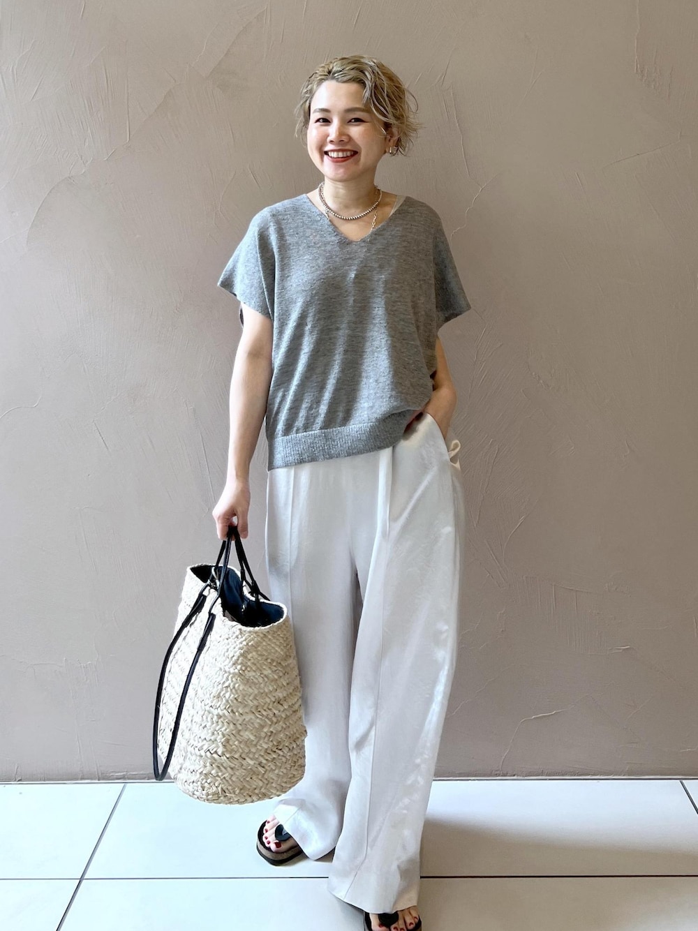 Hirom(SALON adam et rope' 新宿NEWoMan)のかごバッグ「【BAGMATI(バグマティ)】RAFIA/かごバッグ」を使ったコーディネート