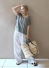 大人気のスパークルリネンラメニットシリーズに 夏のフレンチスリーブが仲間入り♡ ゆったりめのシルエットなので、 ノースリーブのオールインワンやワンピースに重ねるのもオススメです! 着丈が長過ぎないので低身長でもバランスがとりやすいのが 嬉しいポイントです♡ アクセサリー:スタッフ私物