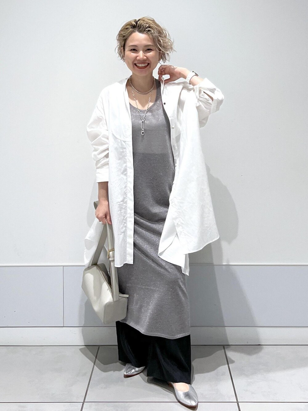 FREE in "little black" 「ティファニーで朝食を」からのインスピレーション。 本当の愛を見つけ自分の殻をやぶった主人公ホリー。 物語以降もきっと本当の自分らしさを表現し、いきいきとその後の物語を紡いでいるはず。 着用したオーバーシャツドレスは ホリーが映画の1シーンで、彼のシャツをラフに着ていたのが可愛かったのでと作成されたアイテム。 一枚で、足元をサンダル合わせのシンプルにラフなスタイルで着るのもオススメですし、 前を開けて羽織ったりと色々な着こなしを楽しんで頂きたいアイテムです。 アクセサリー:スタッフ私物