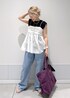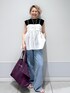 Tシャツとデニムのシンプルなスタイルに サッと重ねるだけで一気にフェミニンな印象に♪ 真夏なら1枚でもヘルシーで可愛いですし、 秋に向けてはジャケットのインにもオススメです♡
