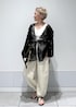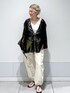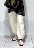 【FINAL SALE】でお得になったスカラップレースジャケットのコーディネートです♡ Vネックでデコルテをスッキリ見せつつ、カーゴパンツでカジュアル感をプラス。 カジュアルになり過ぎないように足元は華奢なサンダルを合わせてモノトーンでまとめました。 アクセサリー:スタッフ私物