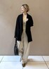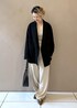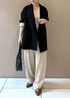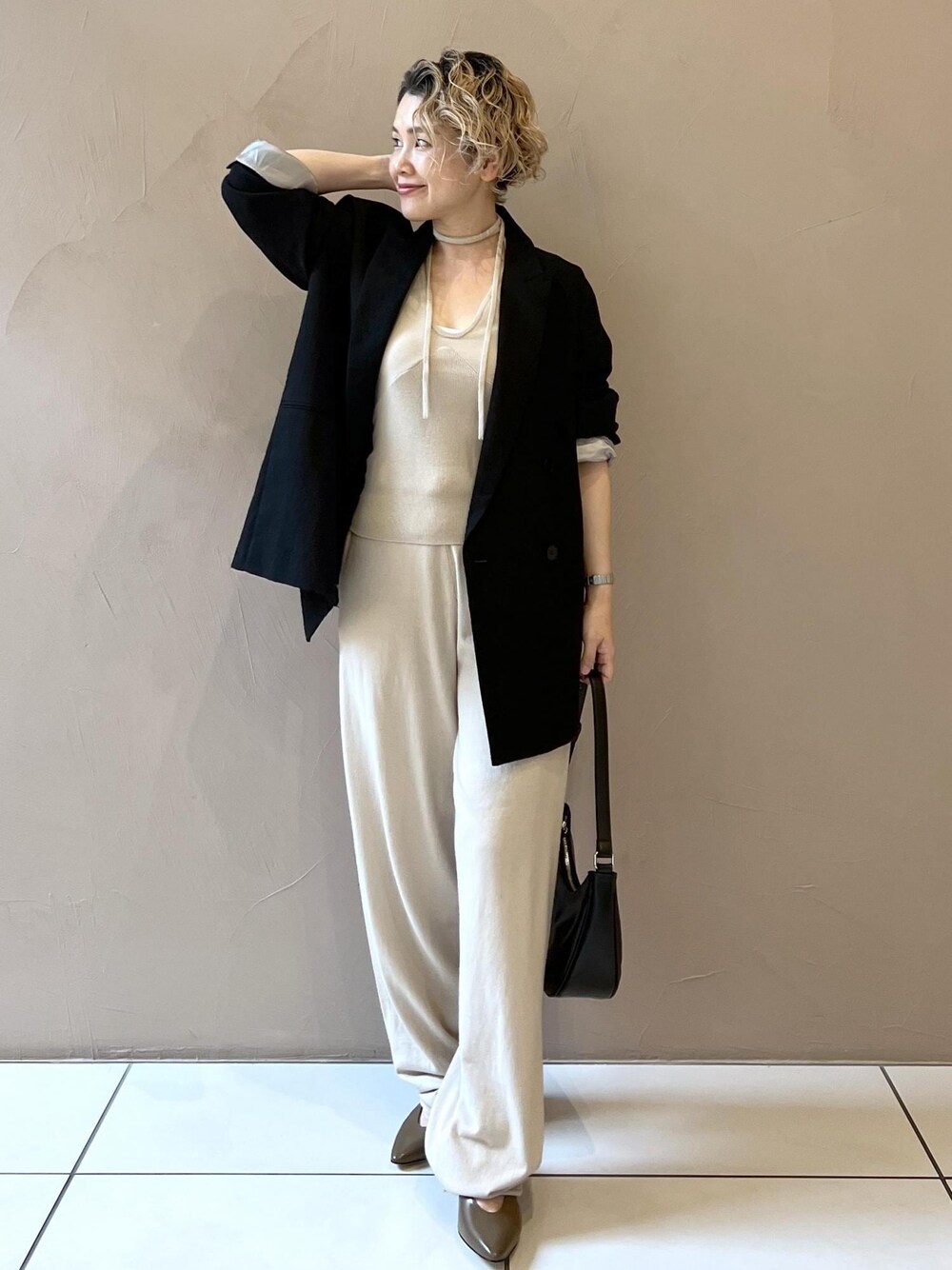 近江晒という加工技術で独特のシボ感(シワ感)が特徴の素材を使ったジャケットです。 凹凸感があり少しラフな雰囲気があります。 軽くてサラッと羽織れるので、カーディガンやシャツのような感覚で気軽に着られるのが嬉しいです♡ 今回はリラックス感のあるセットアップに サラッとジャケットを羽織って、 シンプルで大人カジュアルな雰囲気にしてみました。
