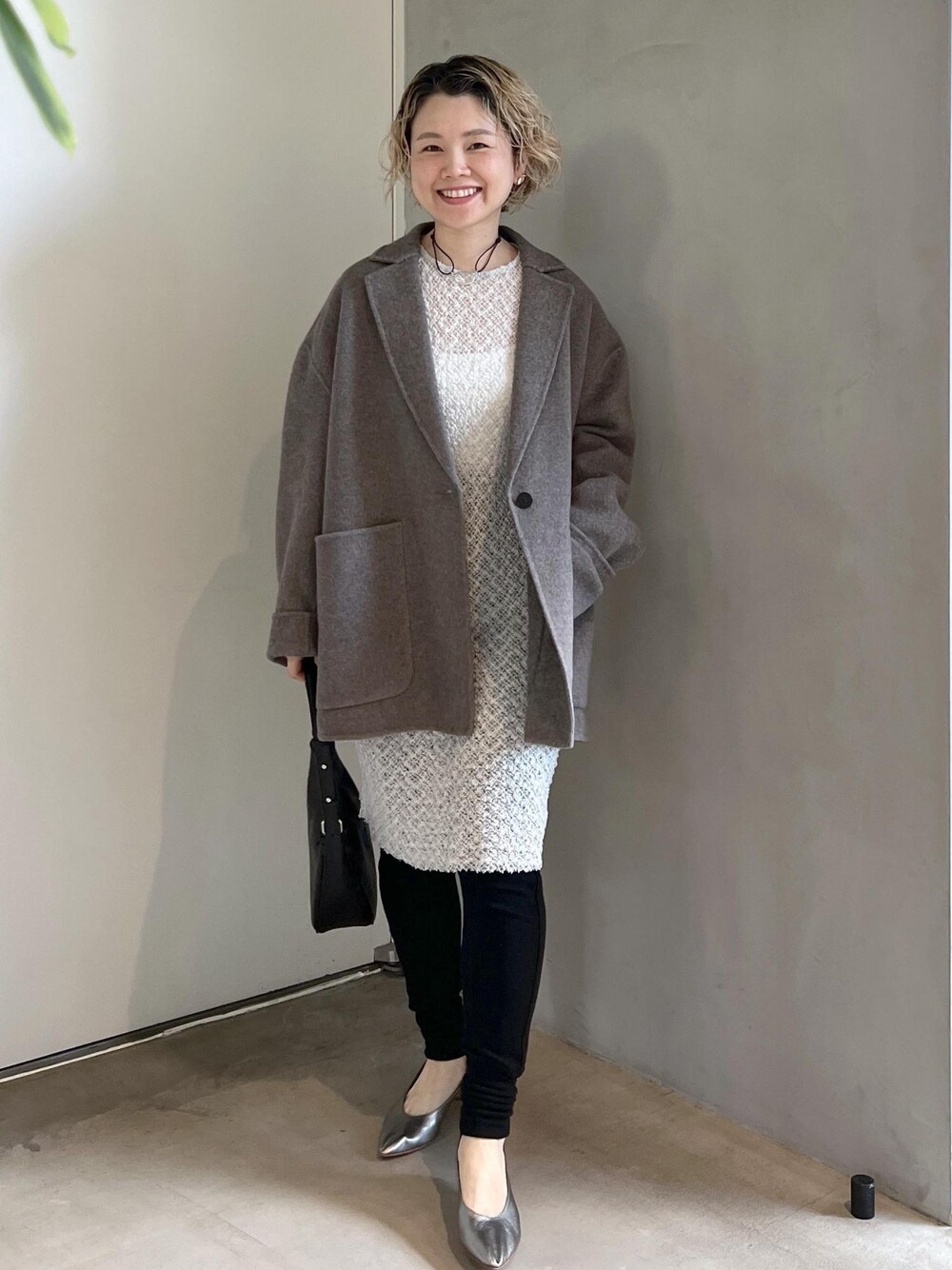 軽くて柔らかくしなやかな素材感のピュアラムウールリバージャケット。 ダブルフェイスのリバージャケットなので、 秋の早いシーズンからサラッと羽織れるアイテムです。 透け感のあるレースのワンピースと合わせて シンプルフェミニンなスタイリングに♪
