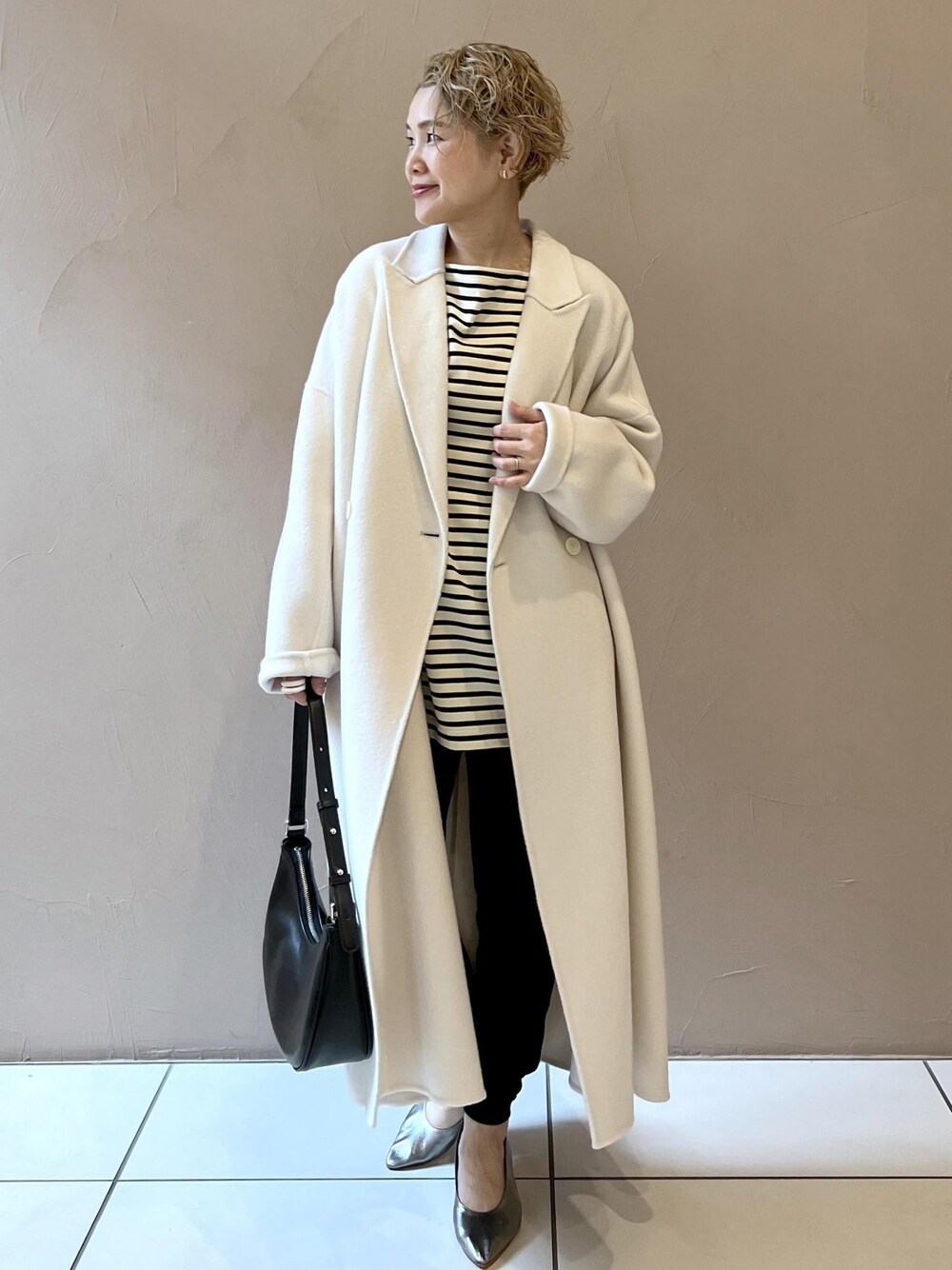 軽くて柔らかくて優しい肌触りのウールコート オーバーサイズですがくたっと滑らかな落ち感があるので 低身長でも『着られてる感』がないのが嬉しいポイント♡ ◎ボーダートップス COGTHEBIGSMOKE(コグザビッグスモーク) お問い合わせ品番:SBM64120 ¥22,000(taxin)
