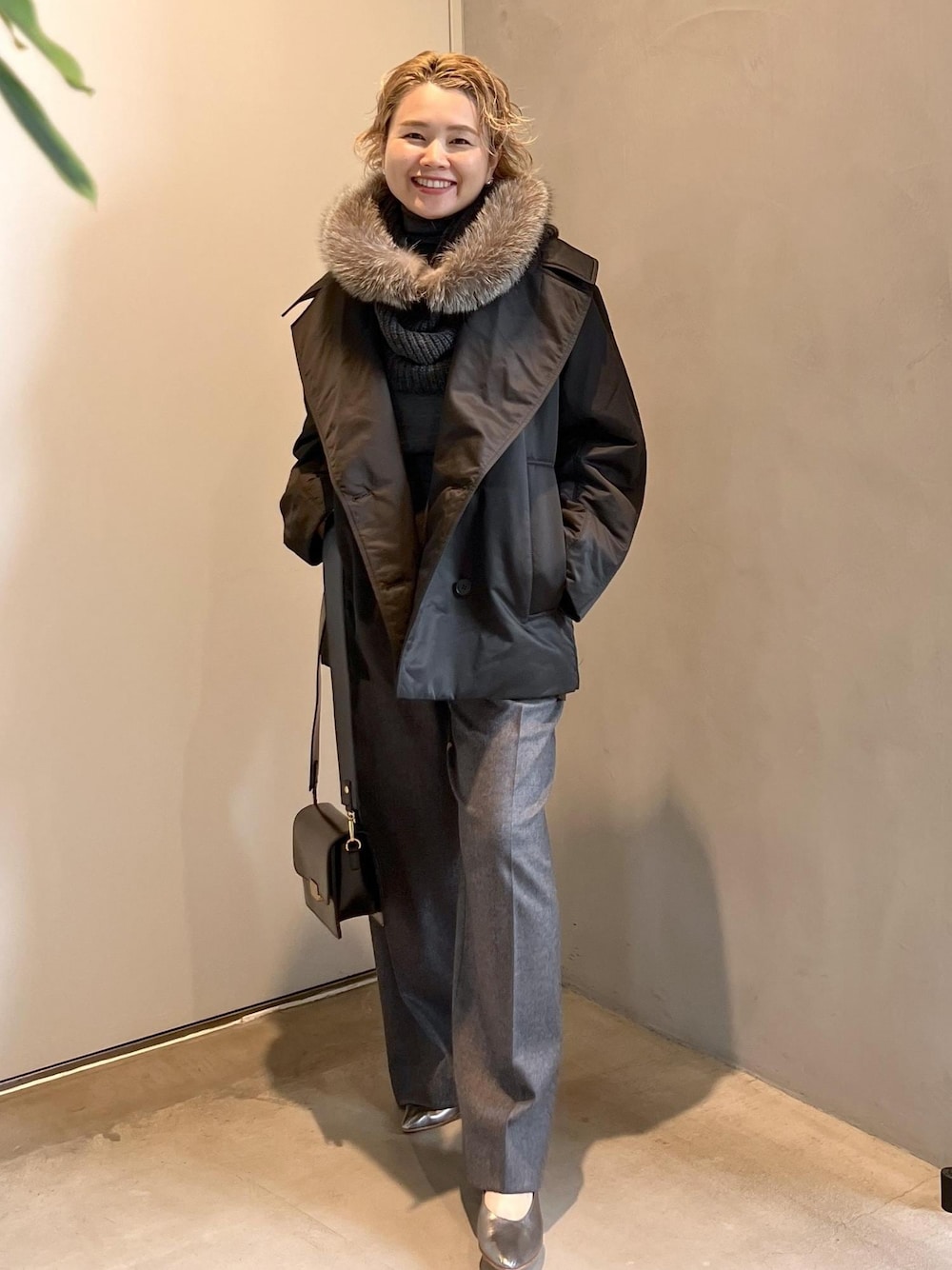 通常のダウンの2倍、中綿の4倍の暖かさを持つシンダウンを使用したピーコート♡ FRATELLI TALLIのフード付きバラクラバを合わせたら 初詣に行けそうなコーディネートになりました♪