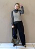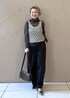華やかなメタリックカラーのニットビスチェをポイントにした コーディネートです♡ シアー感のあるタートルネックを合わせて ほどよくヘルシーさをプラスしました。