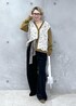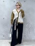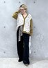 ビジューとフラワーレースが華やかな ヤクウールのカーディガンをメインにしたスタイリング♡ 小物やカラー合わせであえて少し辛口に仕上げました。 スカーフベルト、メガネ:スタッフ私物