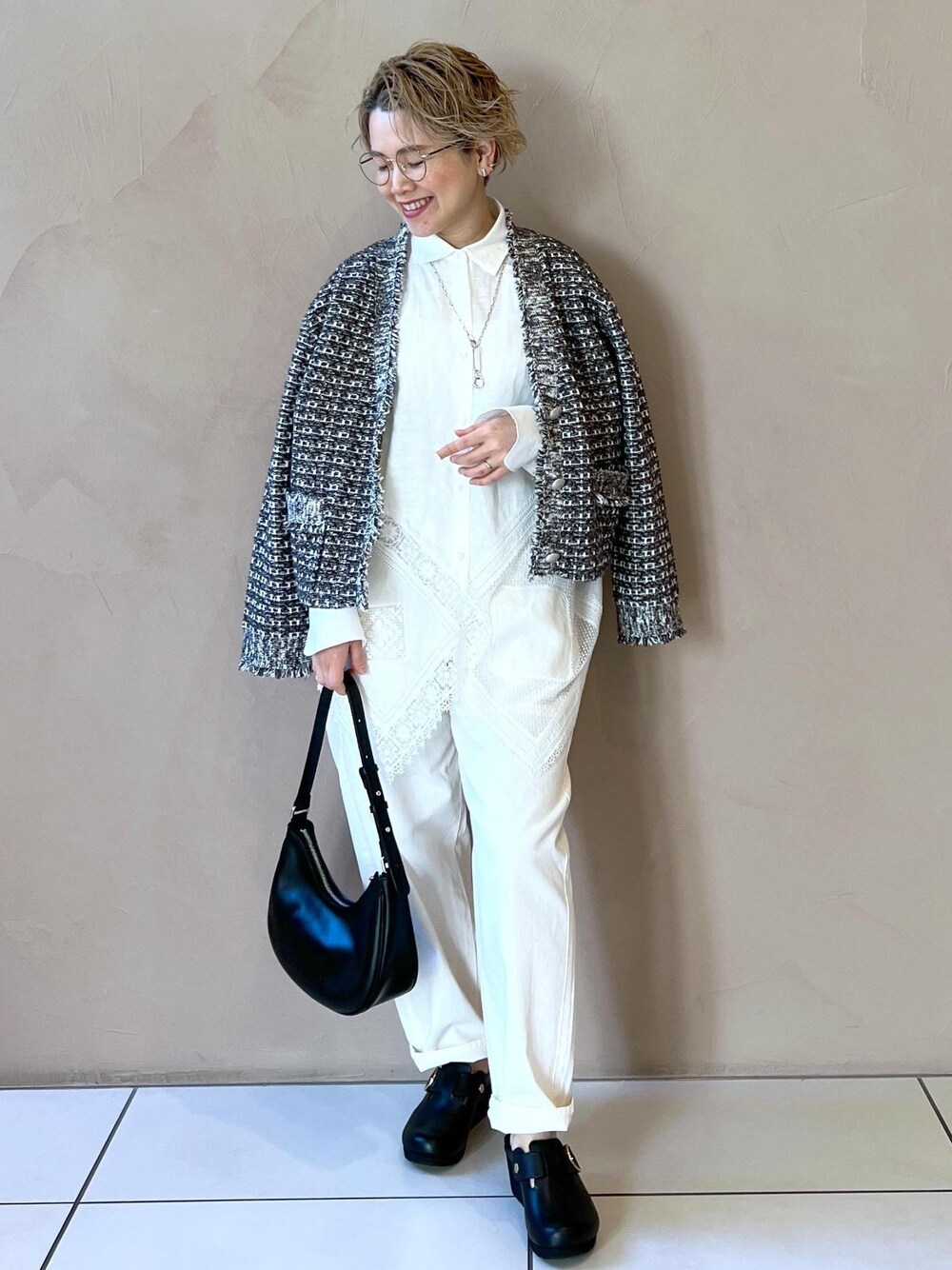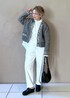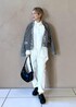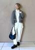 ホワイトコーデにツィードニットカーディガンを合わせて カジュアルシックなムードのコーディネートにしてみました。 カーディガンはラフに肩掛けしているのもポイントです♡