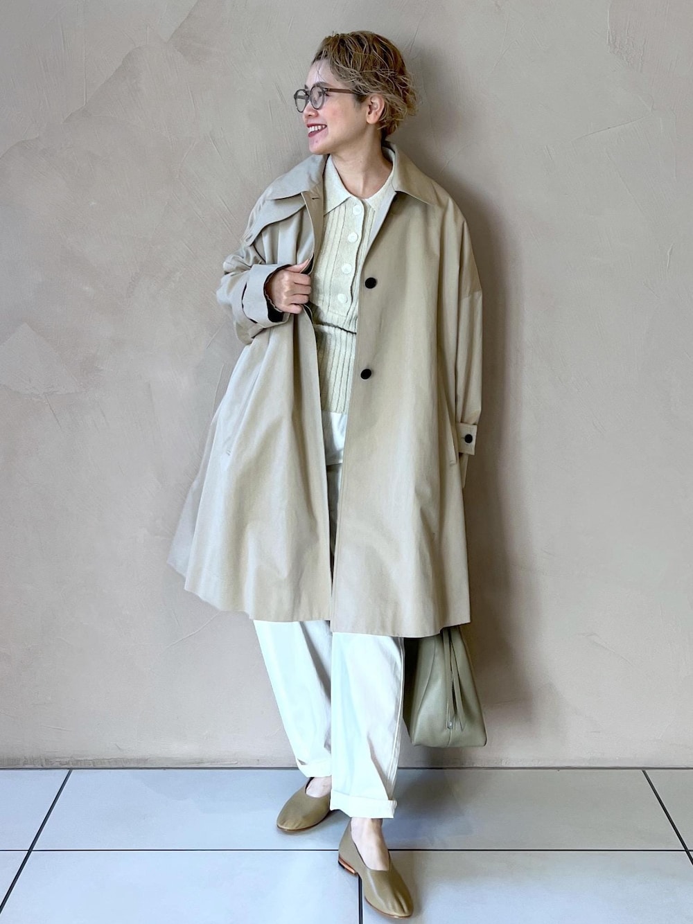 ひと足お先に♥ オススメ春アウターのご紹介です♪ 新作のテントシルエットステンカラーコートがとっても可愛いです 裾に向かってふわっと広がるテントラインのボリューム感がたまりません♪ 裾の両サイドのボタンを外すとスリットにもなるし スタンドネックにしても◎ 袖口のボタンで袖のシルエットも変えられます。 膝下丈なので 低身長でも着丈に悩まず着られるのが嬉しいですね★ ゆったりしたシルエットだから インナーをあったかくして早い時期から着られますよ♪