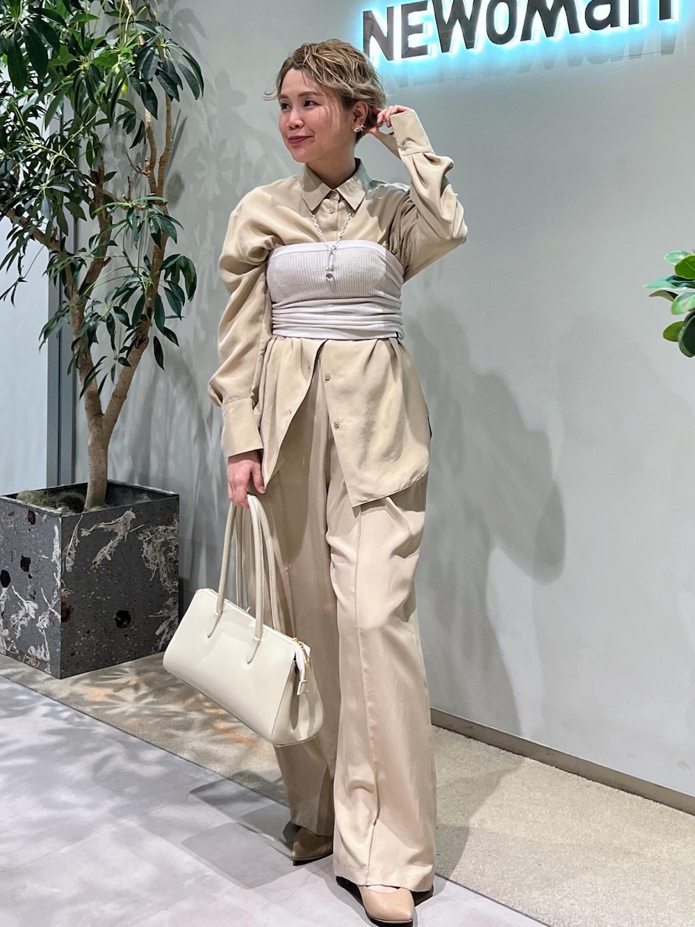 春になると着たくなるベージュのワントーンコーデ♡ シンプルだからこそ素材にはこだわりたいですよね! ほんのりヴィンテージ感のあるシルク素材が シンプルなコーディネートを一気に大人っぽくアップデートしてくれます♪ パンプス:スタッフ私物