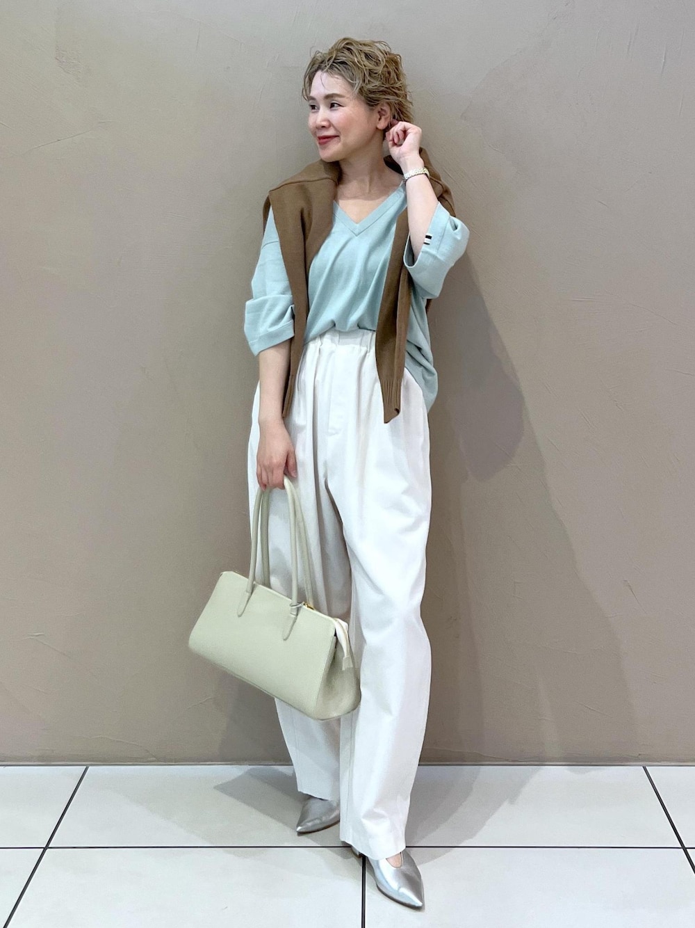 爽やかな春カラーのコーディネート。 春らしいスモーキーパステルなグリーンと ブラウンの組み合わせが ちょっと大人っぽくてお気に入りのコーディネートです。 アクセサリー:スタッフ私物