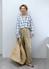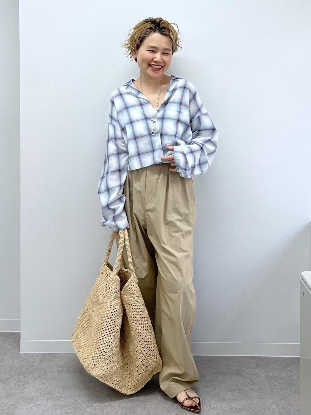 優しい色合いのチェックシャツは 程よいクロップド丈と柔らかく軽やかな素材感で 夏の羽織りものとしても重宝しそうです♡ 低身長はバランスが大事なので ゆったりしつつもバランスが取りやすい丈感が◎ アクセサリー:スタッフ私物