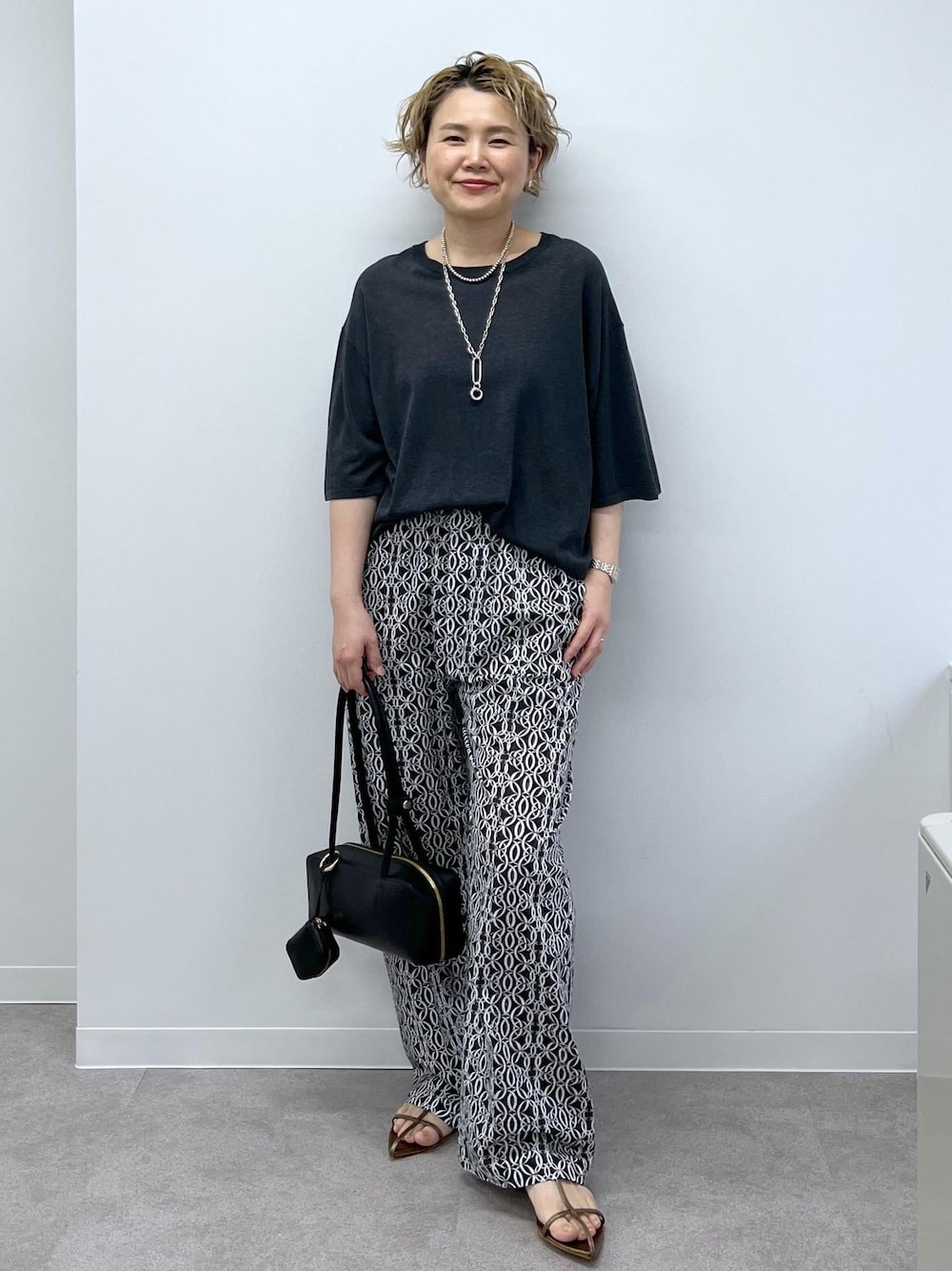 大人なムードのリバティプリントのイージーパンツ 薄手でサラッとした肌触りなので、 真夏でも軽やかに涼しくお召しいただけます♡ ◎リバティプリントイージーパンツ お問い合わせ品番:SHS35230 アクセサリー:スタッフ私物