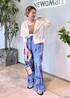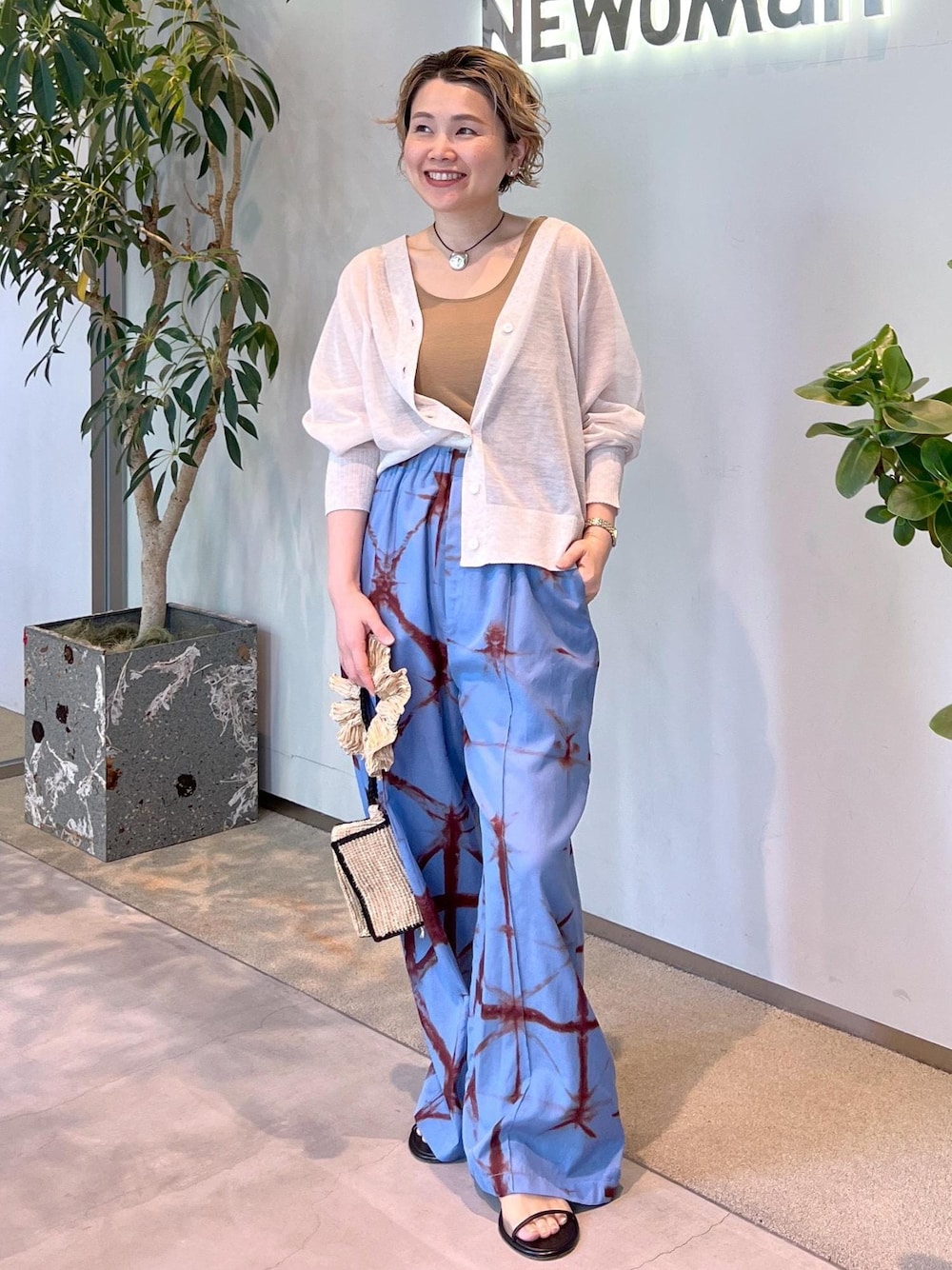 ブルーとブラウンの色合わせがパッと目を引くタイダイイージーパンツ。 リラックス感があるイージーパンツながらも、フロントのピンタックが程よくスッキリキレイに見せてくれます♡