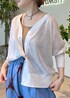 Hirom(SALON adam et rope' 新宿NEWoMan)のカーディガン/ボレロ「ブライトラメVネックシアーカーディガン[一部WEB限定カラー・手洗い可能]」を使ったコーディネート