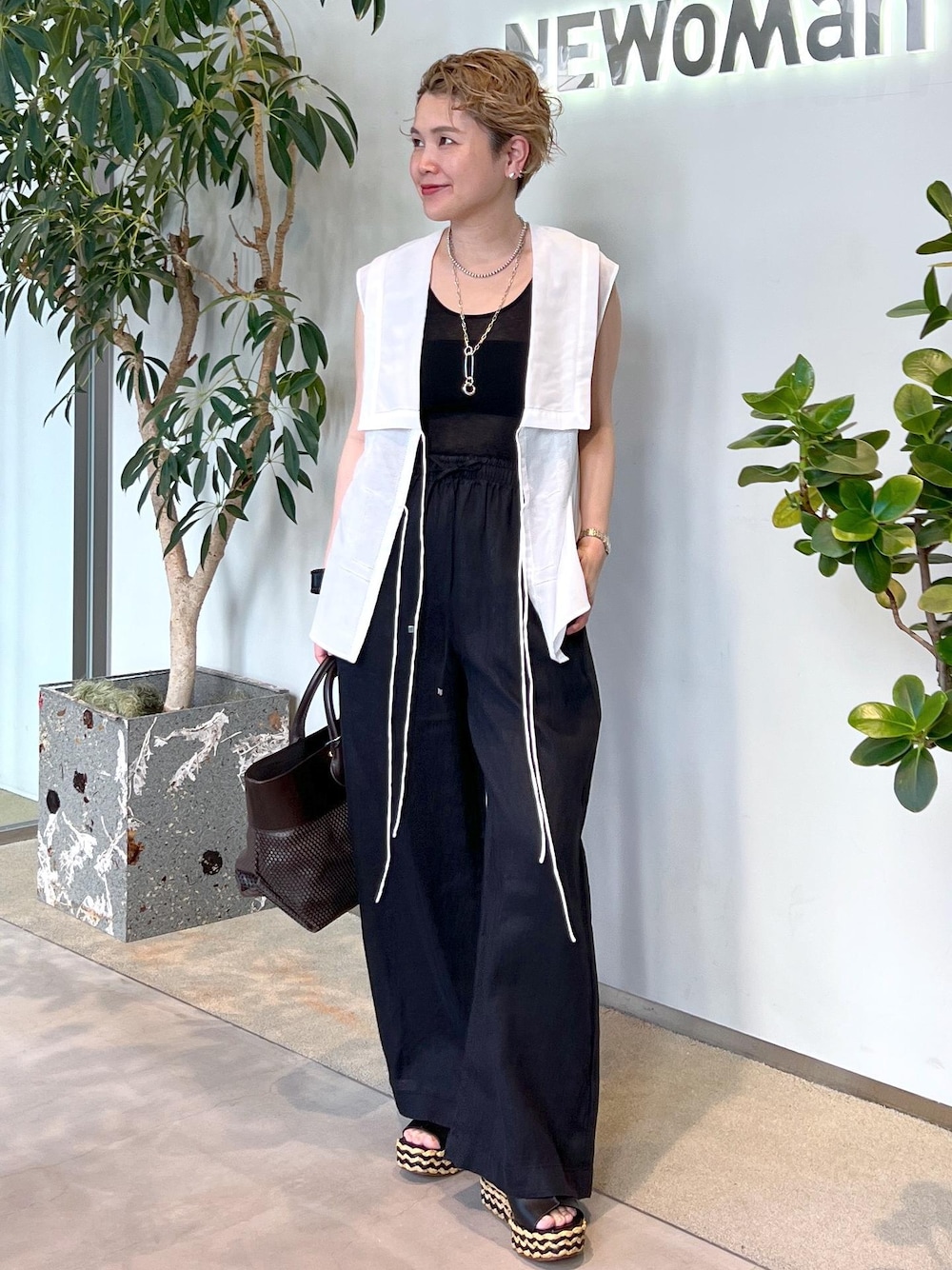 セーラーカラーのような襟元が可愛いジレブラウス。 フロントを開けて羽織ると甘くなり過ぎず、コーディネートのポイントにできる感じが好きです。 モノトーンでまとめると大人なムードがプラスできます◎ アクセサリー:スタッフ私物