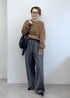 軽くて柔らかくて暖かいウールカシミヤニットのコーディネート。 ブラウンとグレーの柔らかいカラーの組み合わせが 優しい印象を与えてくれます♡ アクセサリー、メガネ:スタッフ私物