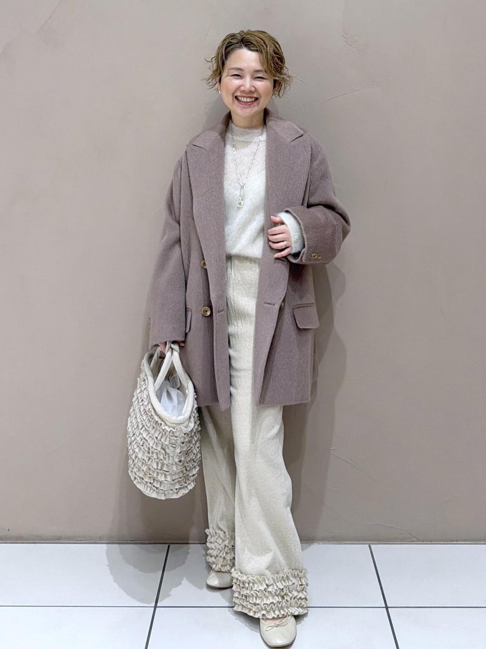 【クチュール ド アダム】別注 Cottage Coatのスタイリング。 優しいホワイトとベージュで合わせたワントーンコーディネートです。 ◎パンツ oldmans tailor R&D_C/W FRILL DECORATION PANTS お問い合わせ品番:SBS65210 カラー:16 natural サイズ:フリー ¥52,800(税込) ◎バッグ oldmans tailor R&D_C/W FRILL MARCHE BAG(S) お問い合わせ品番:SBX65340 カラー:16 natural サイズ:フリー ¥53,900(税込) ◎アクセサリー:スタッフ私物
