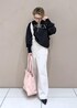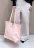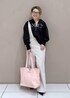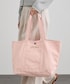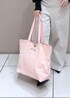 定番のグローサリートートバッグよりもひとまわりコンパクトなサイズ感。 普段使いがしやすくなりましたが、それでもしっかり大容量で、軽めな一泊旅行にも行けちゃうバッグです◎ 持ち手が長めで、アウターを着ていても肩掛けしやすいのが嬉しいポイント。 内側と外側にポケットが付いていて、スマホやカギを入れたり出来るのも便利です! アクセサリー、メガネ:スタッフ私物