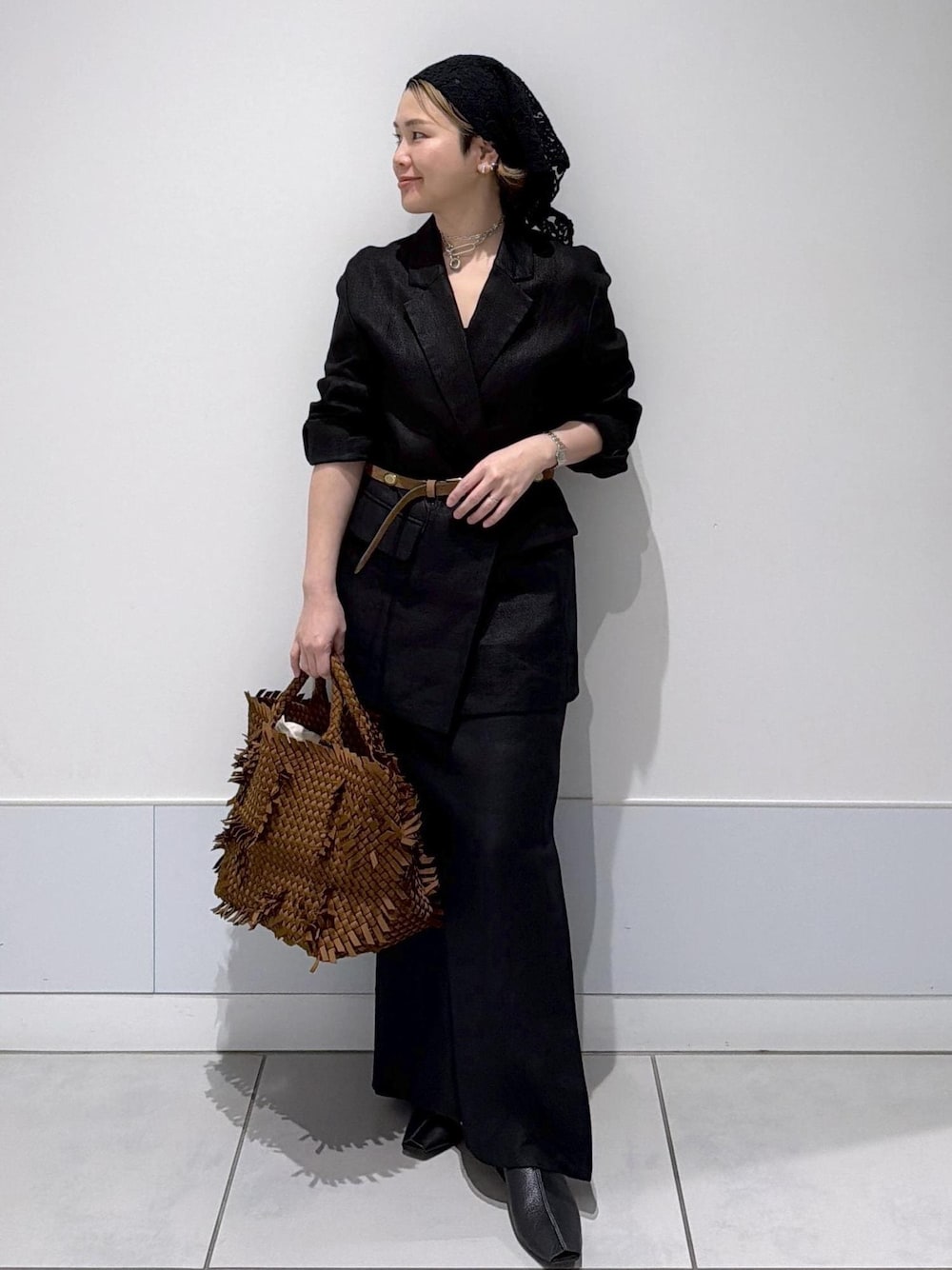キレイめにもカジュアルにもオススメのリネンドンゴロスセットアップ。 今回はOFFモードで、ベルトやスカーフなどの小物をプラスして遊び心のあるスタイリングにしてみました♡ スカーフ、アクセサリー:スタッフ私物