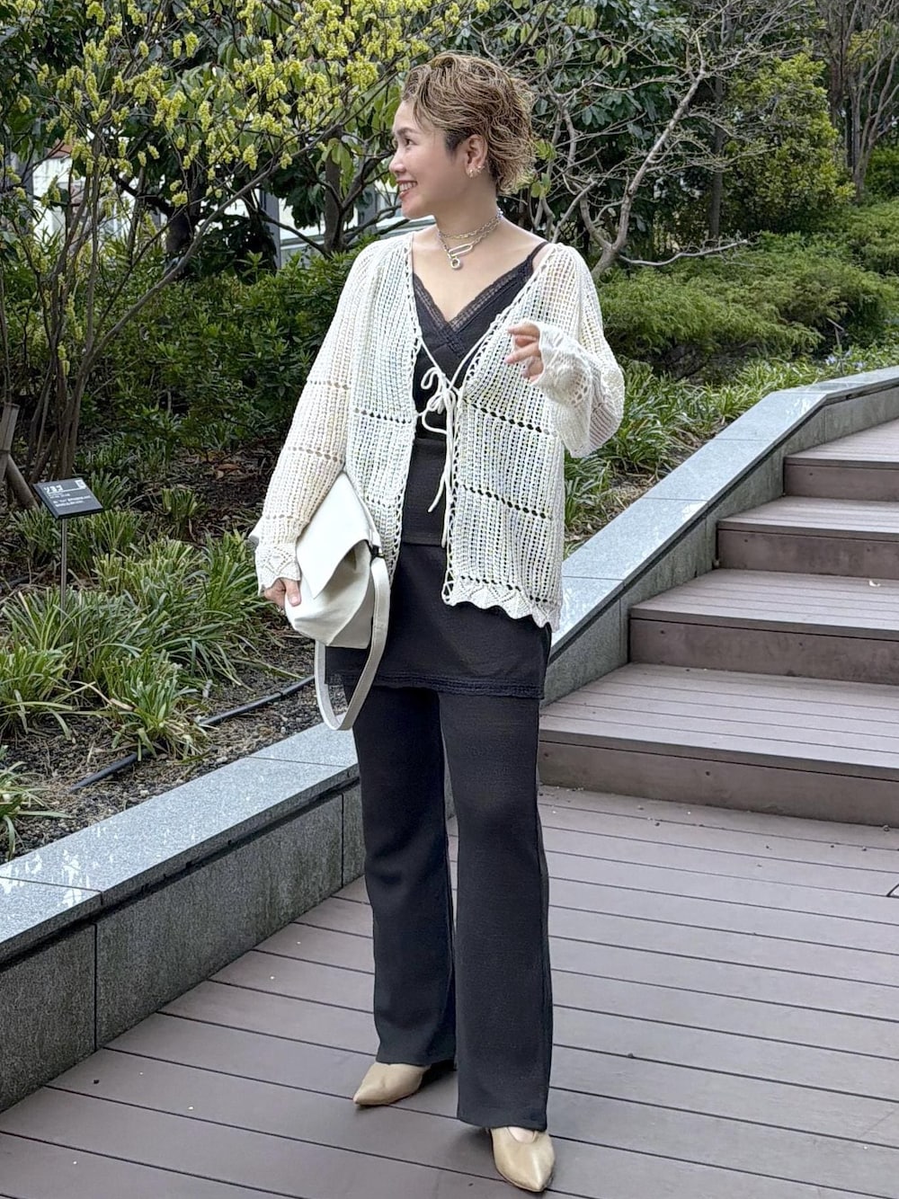 【Angie La La for SALON】GENTLE intimate Angie La La Vintageコラボのキャミソール&レギンススカートのご紹介です♡ 代々木上原のヴィンテージショップ、Angie La La Vintageとのコラボレーションアイテム。 着てみて着心地の良さにびっくりでした♫ ヴィンテージライクなデザインのかわいさはもちろんのこと、 この着心地の良さをぜひぜひ体感していただきたいです! 個人的には、いつも細身のパンツやレギンスを履くと ふくらはぎの張りが気になってしまうのですが、 このレギンスは膝下のフレアーが絶妙で 脚がまっすぐスッキリ見えたのが嬉しいポイントでした♡ アクセサリー:スタッフ私物 【Angie La La Vintage Remake Items Release】 SALON adam et ropeがセレクトしたヴィンテージレースを使用したリメイクアイテムを、Angie LaLa監修で制作しました。 4月2日(木)コラボレーションアイテムの発売にあわせて、SALON adam et rope各店舗にて展開します。 すべて一点ものとなる、唯一無二のアイテムを取り揃えています。 ✏︎information ※撮影場所やライティング、お使いのモニター環境によって色の見え方が異なる場合がございます。 ※商品のカラーは詳細画像の色味をご参照ください。