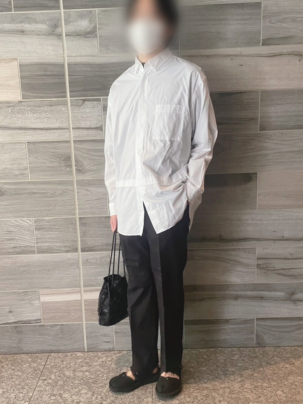 今回から秋コーデ LEのセットアップを発売から3年目にしてやっと手に入れられました。 いつもすぐ売り切れるので再販待ち望んでました。 まだ上着を着るには暑いのでジャケットはお預けですが、スラックスだけ。 万能でスタンダードな黒スラックス。 通年使えるので着倒したい。 【Coordinate】 Shirt: #uniqloplusj Bottoms: #le #lechoppe Bag: #baobao Shoes: #suicoke