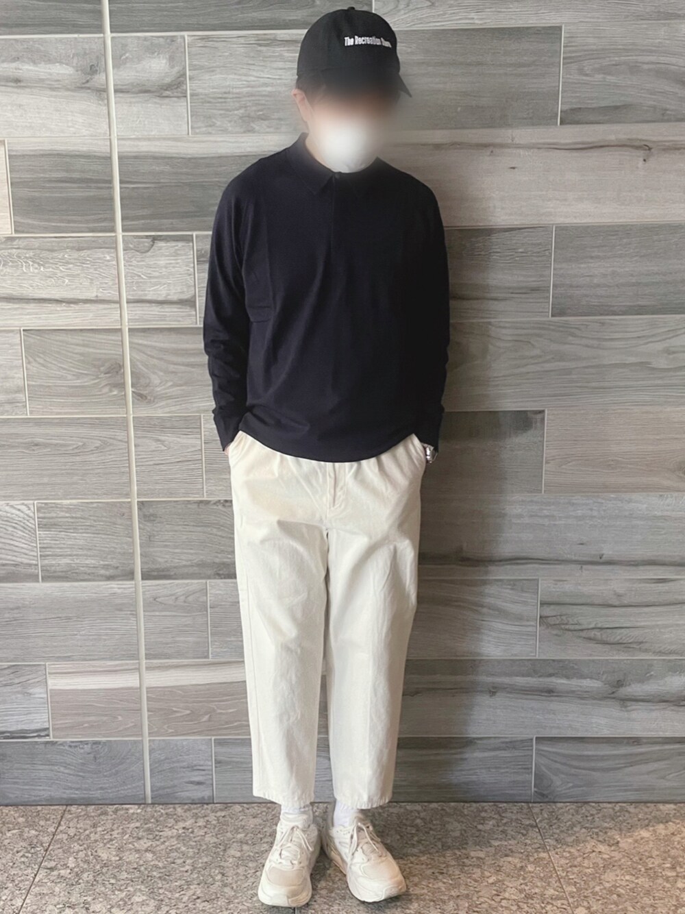 . . UNIQLO +J 21AW 購入品2点目 ニットポロ 特にレイヤードせずにシンプルにまとめました。 あえてのおじさん感を出して😁 . . 【Coordinate】 Tops: #uniqloplusj Bottoms: #stevenalan Cap: #therecreationstore #47brand Shoes: #hokaoneone
