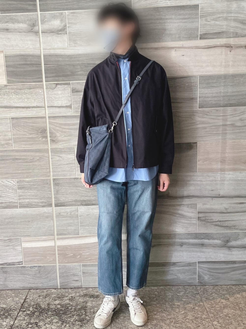 . . 全身青い ブルートーンコーデ🫐 . . 【Coordinate】 Outer: #baracuta × #heugn for #unitedarrows Scarf: #oamc Tops: #le #lechoppe Bottoms: #uniqlou Bag: #gucci Shoes: #diadora . .
