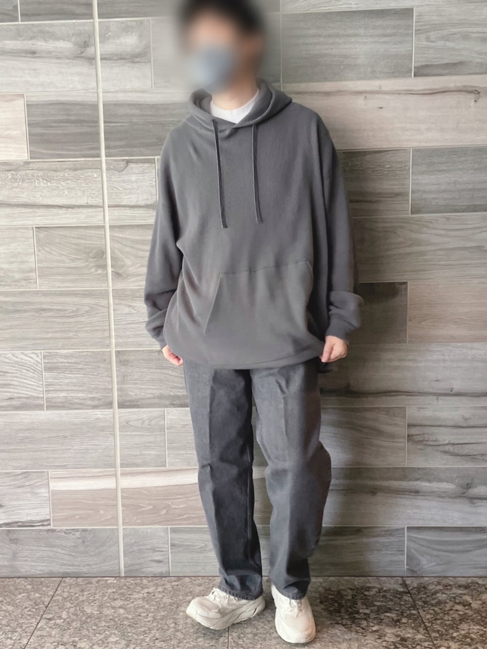 . . . グレートーンコーデ ゆるゆるで気怠い感じの このオーバーサイズパーカーお気に入り✨ . . 【Coordinate】 Tops: #graphpaper Bottoms: #ciota Shoes: #hokaoneone . .