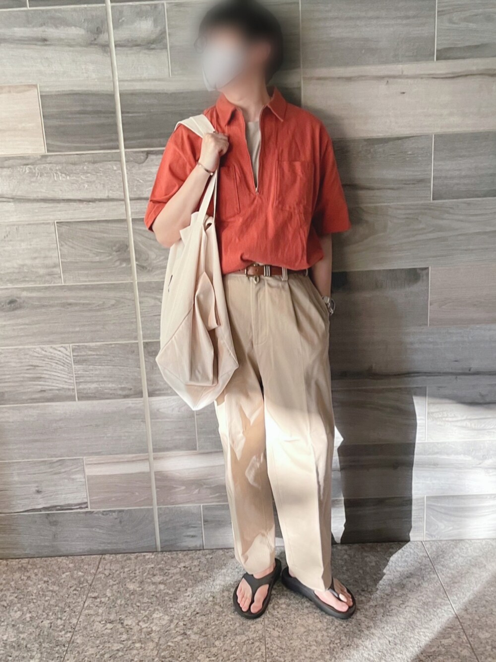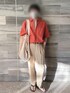 . . たまに無性に着たくなるオレンジシャツ🍊 . . 【Coordinate】 Tops: #auralee Bottoms: #standardjournal Shoes: #oofos Bag: #hay . .