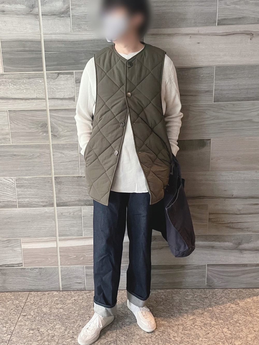 . . Aラインが綺麗にでるベスト✨ やはりシンプルな格好に映えますなぁ👌 色々試してみたくなる . . 【Coordinate】 Outer: #lavenham × #lechoppe Tops: uniqlo Bottoms: #thenorthface Bag: #llbean × #remirelief Shoes: #reproductionoffound × #stevenalan . .