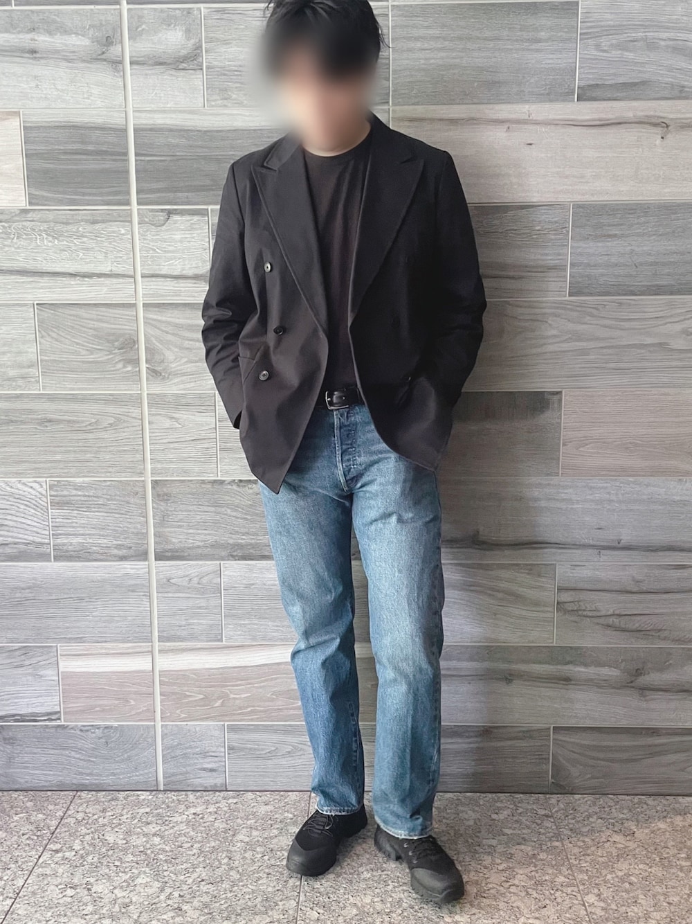 . . やっとジャケットが羽織れる季節に🍂 定番のLevi's501とあわせてみました。 . . 【Coordinate】 Outer: #le Tops: #uniqlo Bottoms: #levis Shoes: #thenorthface . .
