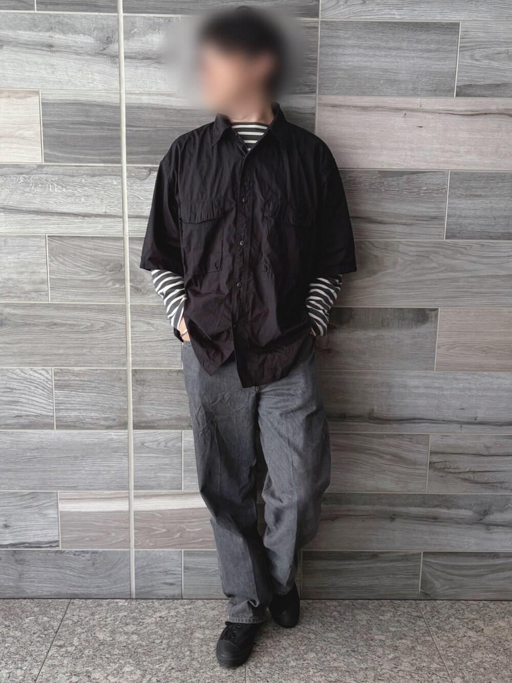 . . 【Coordinate】 Shirts: #uniqlou Inner: #armorlux Bottoms: #ciota Shoes: #fumitoganryu × #converse . .