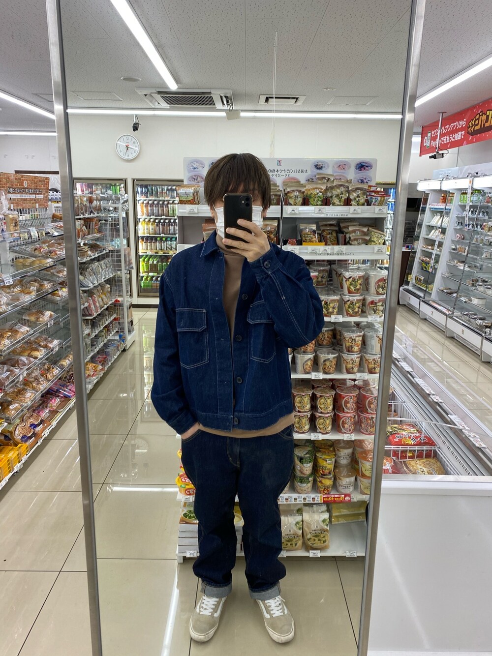 ご覧いただきありがとうございます。 デニムジャケットコーデ。 写真だとわかりづらいかもですが 同色系デニムパンツでセットアップコーデ。 いつもいいねお気に入りありがとうございます。