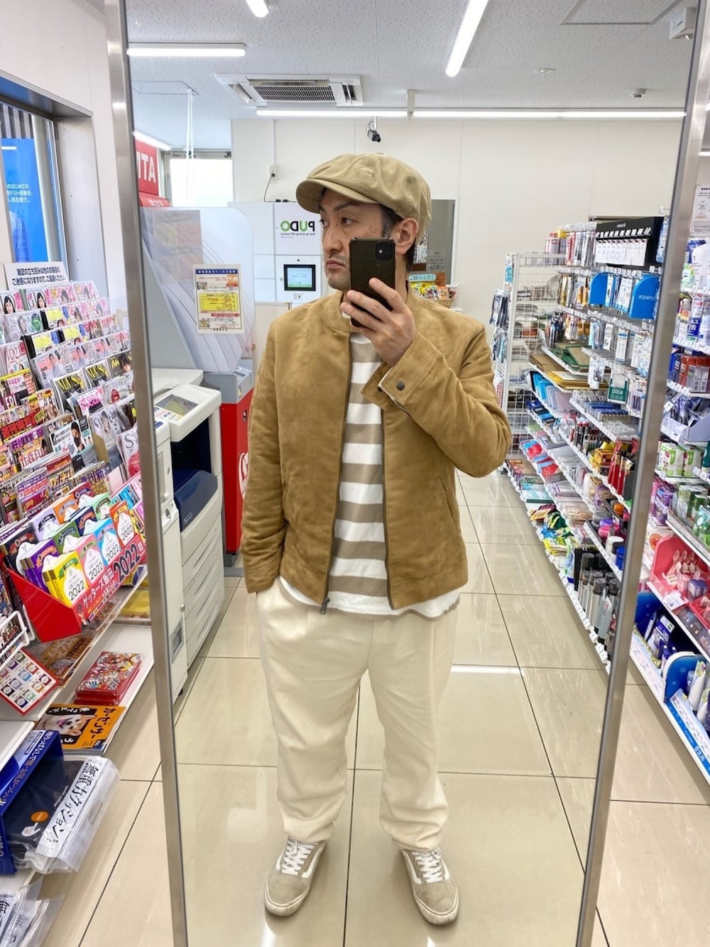 ご覧いただきありがとうございます🙇♂️ ゾロ目コーデ。 シングルライダース。同系色、淡色?コーデ。 ライダースは昨日同様セカストオリジナルのプライベートブランドアンティクローズの色違いベージュのスウェード風な感じ。 マックの月見バーガー他月見的な商品この時期多いんですかね? いいねお気に入りいつもありがとうございます。