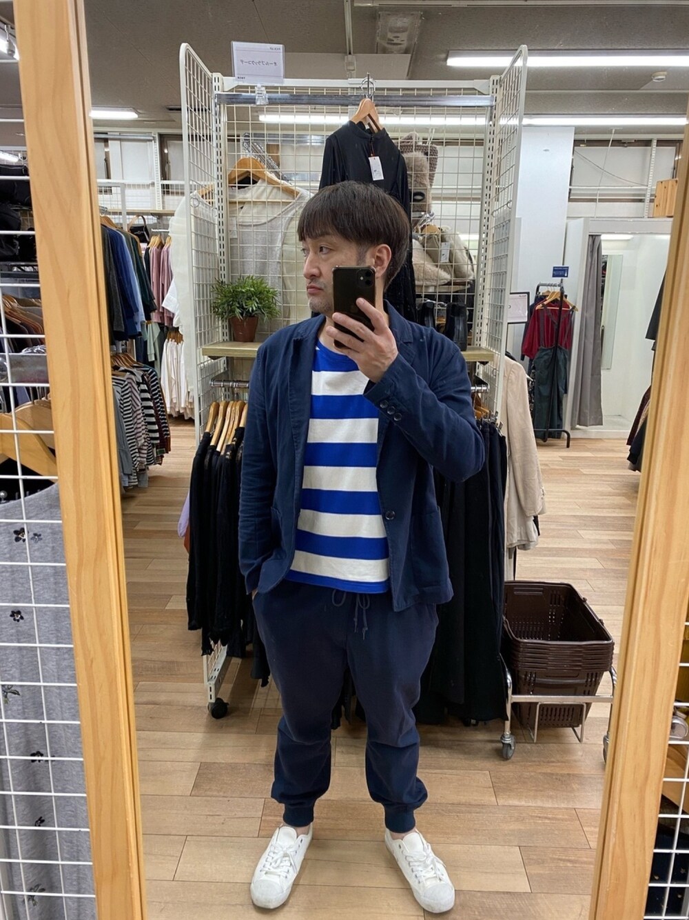 ご覧いただきありがとうございます🙇♂️ 薄手のセットアップ着納めコーデ。 麻素材っぽい感じのセットアップ。 ボーダーに白スニーカーで初夏を思わせるコーデ。明日もセットアップかな… いいねお気に入りいつもありがとうございます。
