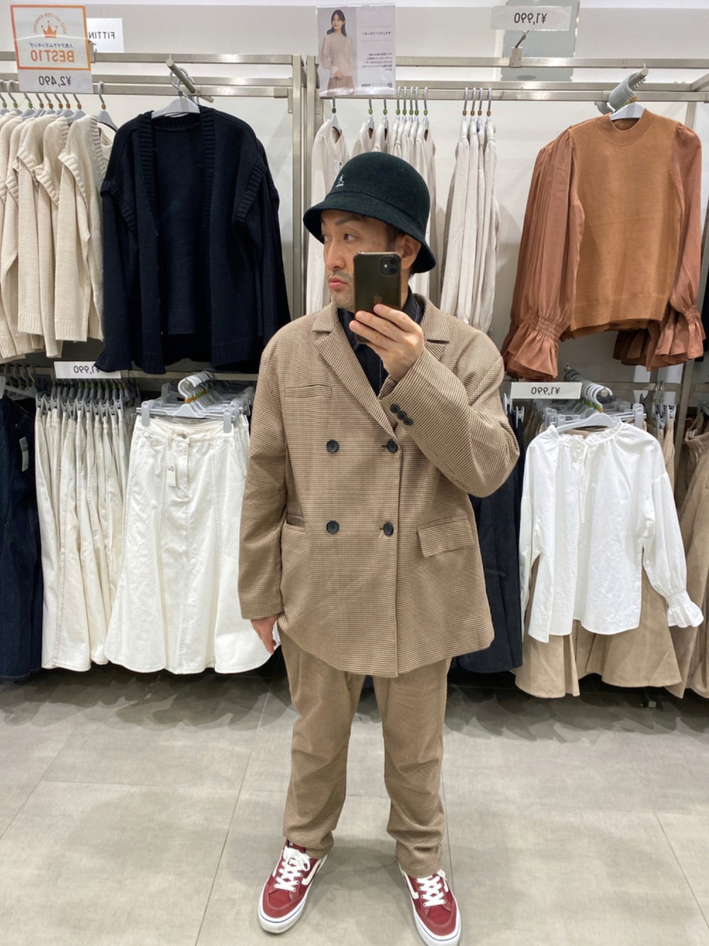 ご覧いただきありがとうございます🙇♂️ キャラメルコーンプリンゲットだぜ!(ポケモンサトシ風で)ローソン巡り2軒目でゲット!秋の味覚と共に小窓にて! 本日も懲りずにセットアップ。千鳥格子柄?本日のものは裏地も付いていて生地もしっかりしているので今日のような少し肌寒い日も大丈夫。変化をつけるため本日はダブルのジャケットにバケハで。 オーバーサイズの方がかっこいいと思って大きめ購入ですが前ボタン閉めてみたらなんかシルエットが四角いような…うーん微妙…なので小窓にて前開けたバージョンも。前開けたら開けたでなんかダラっとしてるような… いいねお気に入りいつもありがとうございます。