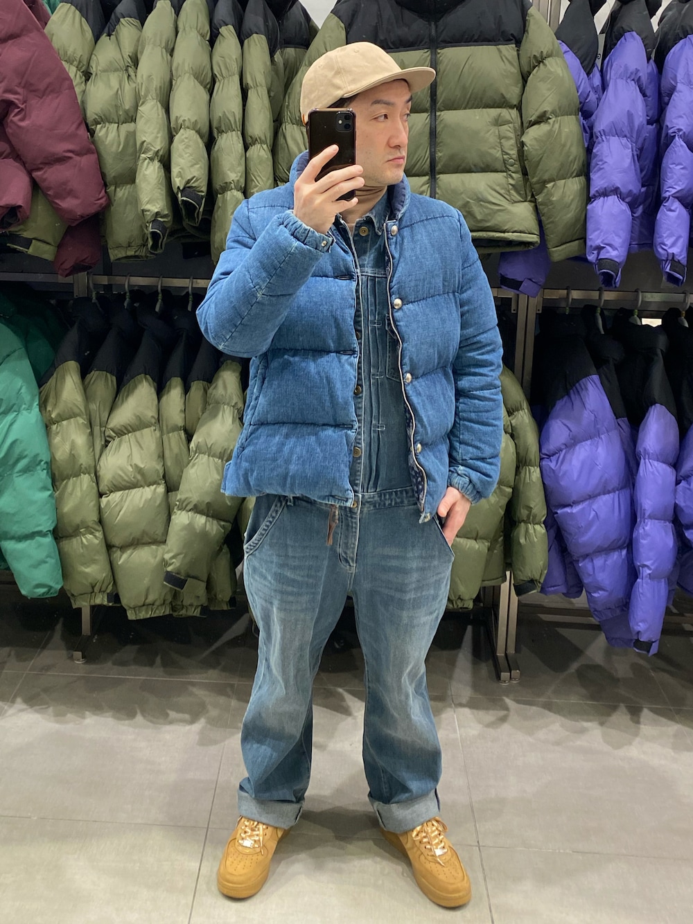 ご覧いただきありがとうございます🙇♂️ 本日もダウンの中からダウンジャケットコーデ😀ダウンジャケットがストリートと勘違いしてんのか‼︎との声が聞こえてきそうですが懲りずに本日もダウンジャケットでストリートを目指します😊 本日デニムオンデニム。デニムのツナギ久々投入。アウターどうしようかと悩み結局ダウンジャケット。同素材のデニムのものをチョイス。デニムの色味のグラデーションで立体感を出そうと思いましたが😅思っていたより同じ様な色味でした😂まぁちょっと立体感なんて使ってみたかったなぁなんて😀また使ってみたいだけ病が出ちゃいました😆 小窓はセブン。 ラブアンドピース。戦争のない世界。誹謗中傷のないWEAR。みんな仲良く、オシャレ楽しみ、旨いもの食べて笑顔に。 いいねSAVEいつもありがとうございます🙇♂️