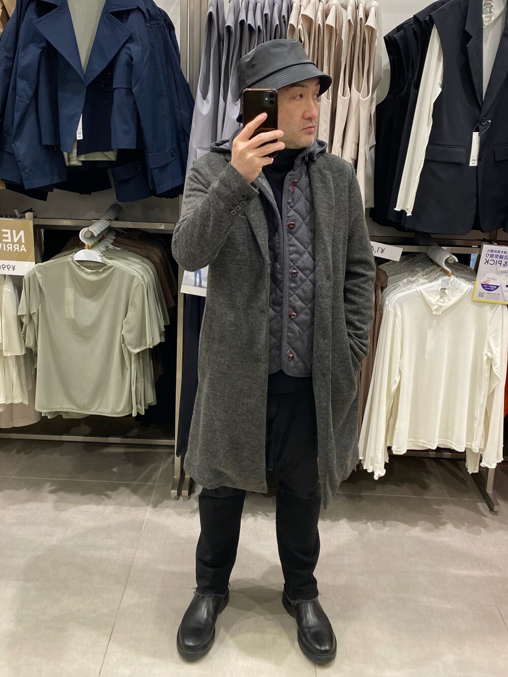 ご覧いただきありがとうございます🙇 投稿連休。体調優れずお休み。健康である事の素晴らしさ改めて実感。 チェスターコートコーデ。お休みしてたので少し前のコーデなのでちょっと厚着。寒の戻りの菜種梅雨で雨で寒いと言う中でのコーデでインナーダウンコーデ。なかなか活躍していなかったキルティングのダウンベスト。チェスターコートと色味が合うかなとインナー使いで。キレイめにまとまったかな?😓 小窓はローソン。 いいねフォルダインいつもありがとうございます🙇