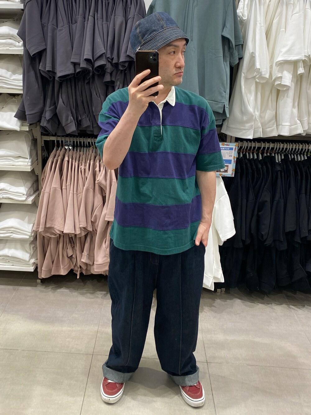 ご覧いただきありがとうございます🙇 ラガーシャツコーデ。全体的にダラっとした感じ。 小窓はセブンにて購入。雪見だいふくコメダ珈琲コラボ。 いいねフォルダインいつもありがとうございます🙇