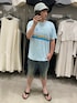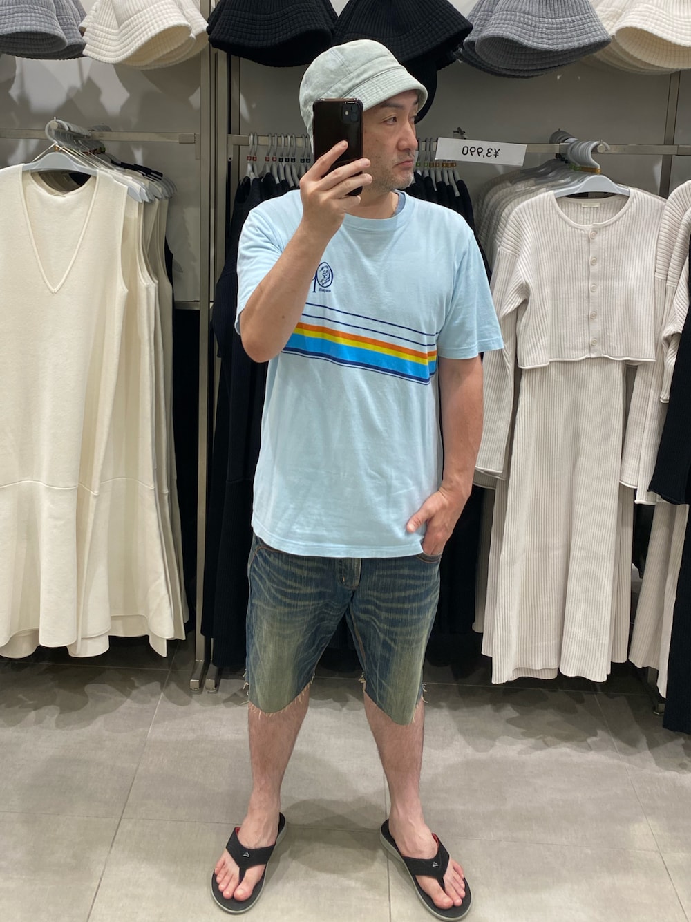 ご覧いただきありがとうございます🙇 半ズボンコーデ。なんかわんぱくな仕上がりですが😅海な感じをイメージしレトロチックなTシャツでレトロサーフ的な感じイメージしてコーデ。結局なんか違うかなって仕上がりですが😂 小窓はセブン。有名パテシエコラボ? いいねフォルダインいつもありがとうございます🙇
