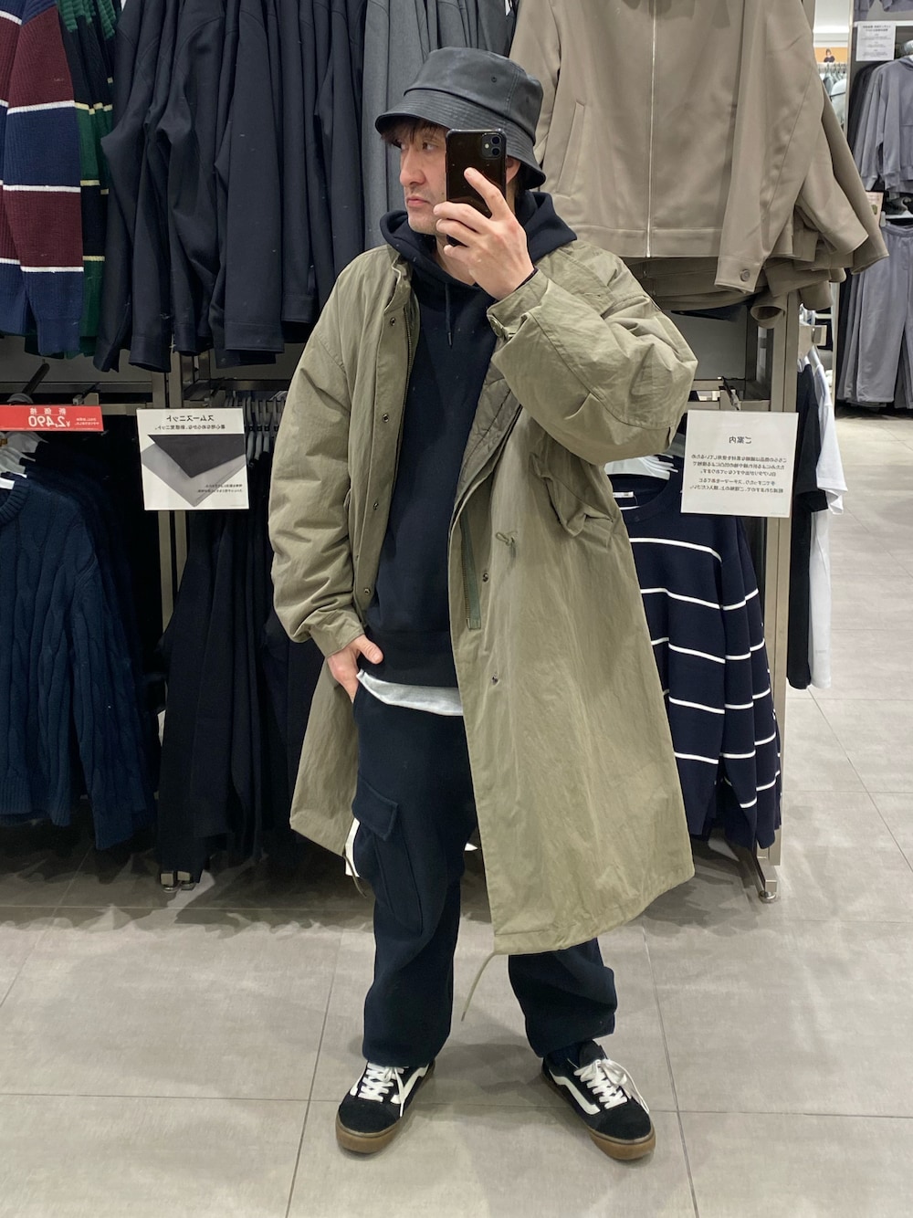 ご覧いただきありがとうございます。 まだまだありましたまだ投稿してない過去コーデ。スウェット上下の楽ちんスタイルにモッズコート合わせ。ハットはレザーできちっと感。