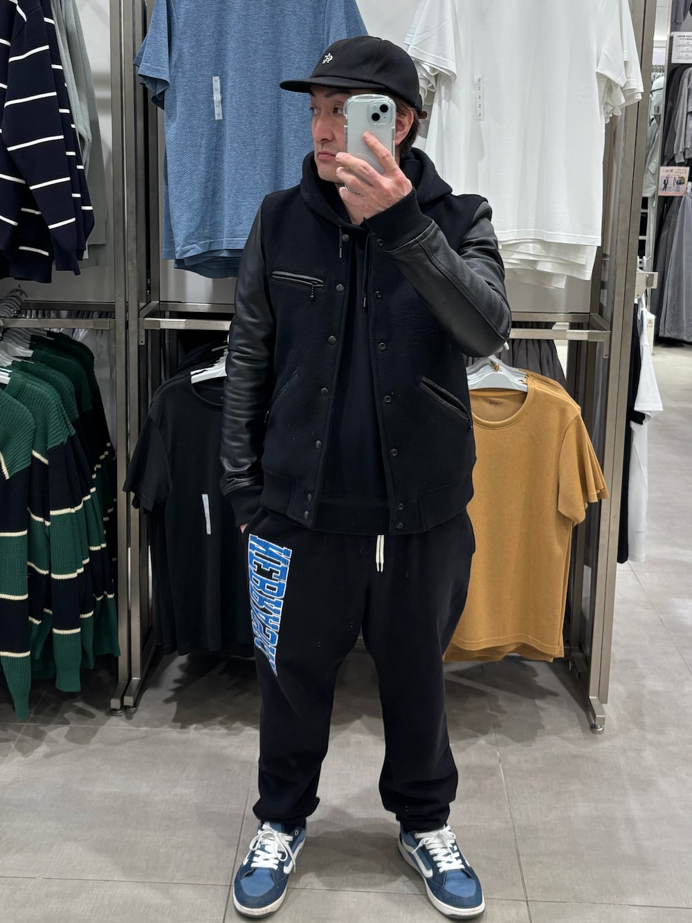 ご覧いただきありがとうございます。 昨日に続き連続投稿。久々に連続投稿。 パーカー、スウェットパンツの休日モードにスタジャン合わせ。ワンマイルってこんなんでいいんですかね?