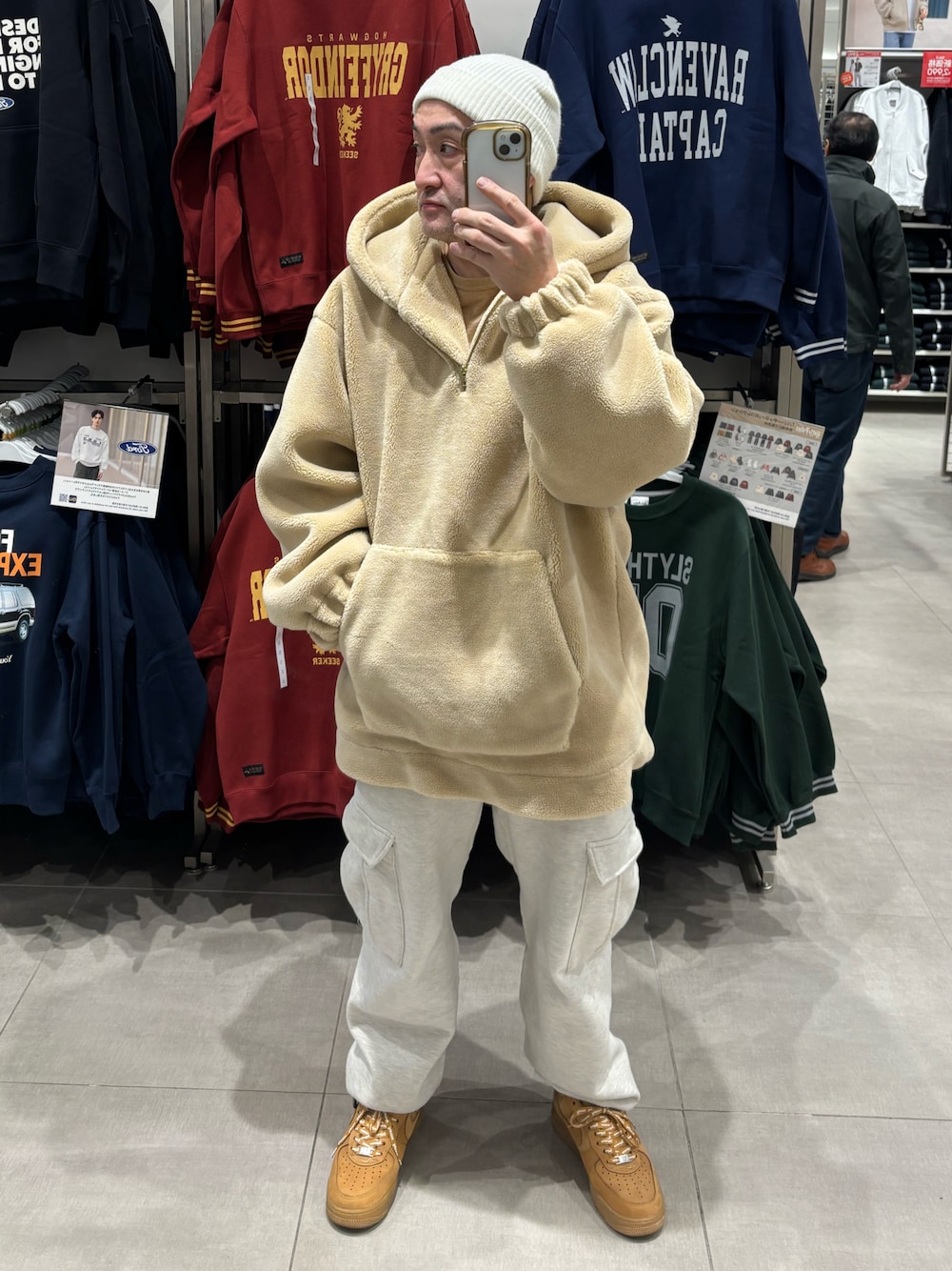 ご覧いただきありがとうございます。 撮りだめコーデになりつつあったコーデ。 もう年越ししたのですでに昨年のコーデなので撮りだめコーデですかね。 休日リラックスコーデ。スウェットパンツにオーバーサイズのモコモコパーカー。 一目惚れで衝動買いしましたが思ったよりコーデのハードルが高くタンスの肥やしになりつつありましたがなんとかコーデ。とても暖かく冬に大活躍のアイテムですがプルオーバーなところが難点。脱ぎ着するのがなかなか大変ですね。