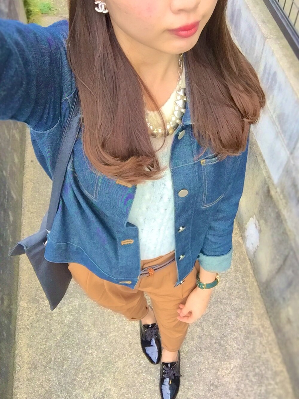 今日はデニムジャケット👗 シュッとしたシルエットが好きなので パンツと合わせるのが好きです🙋 色がある服なので 黒のクラッチショルダーと 靴を入れてみました 今日もいい天気☀️