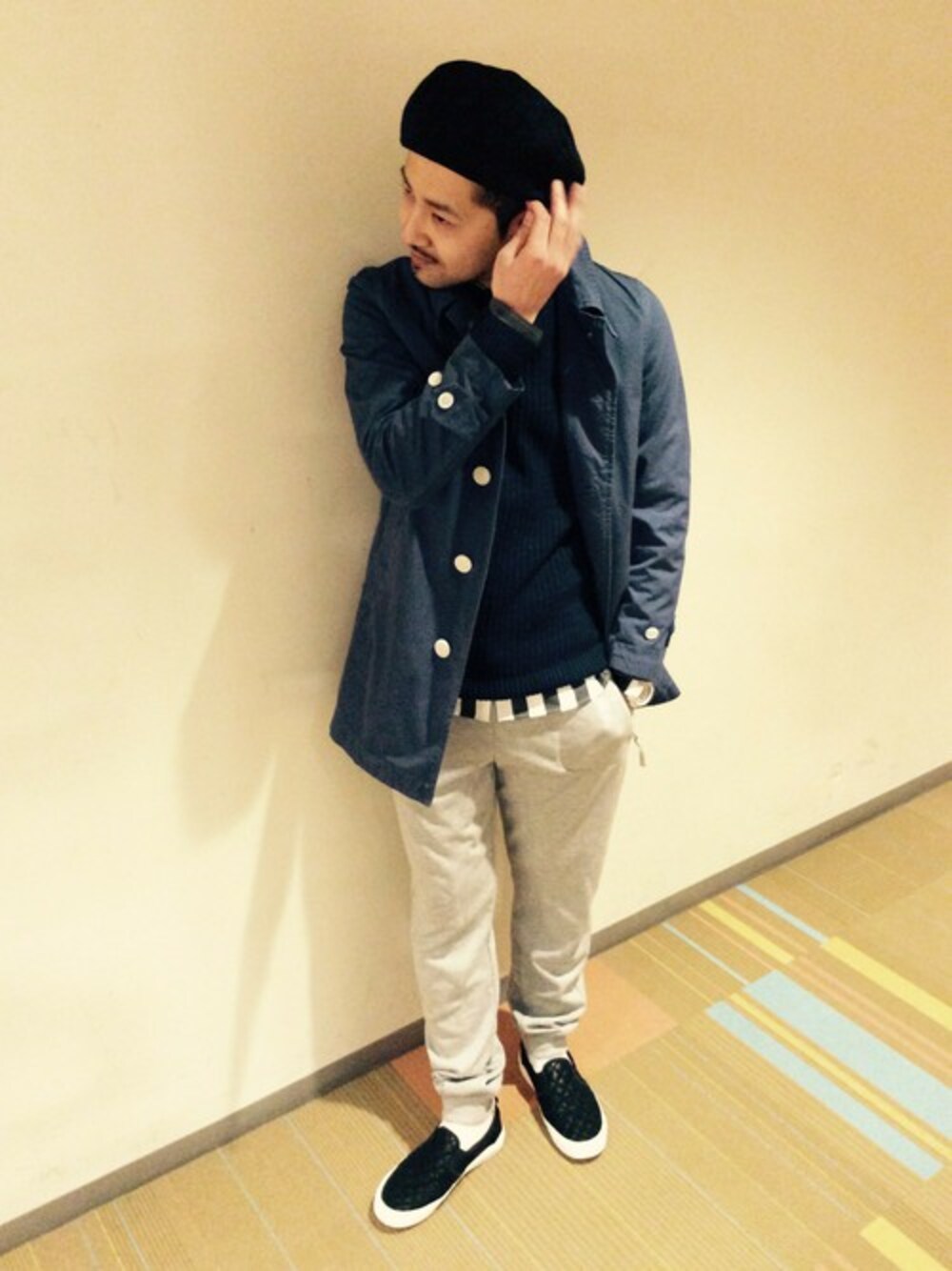ひげさんのステンカラーコート「インディゴライクステンカラー」を使ったコーディネート