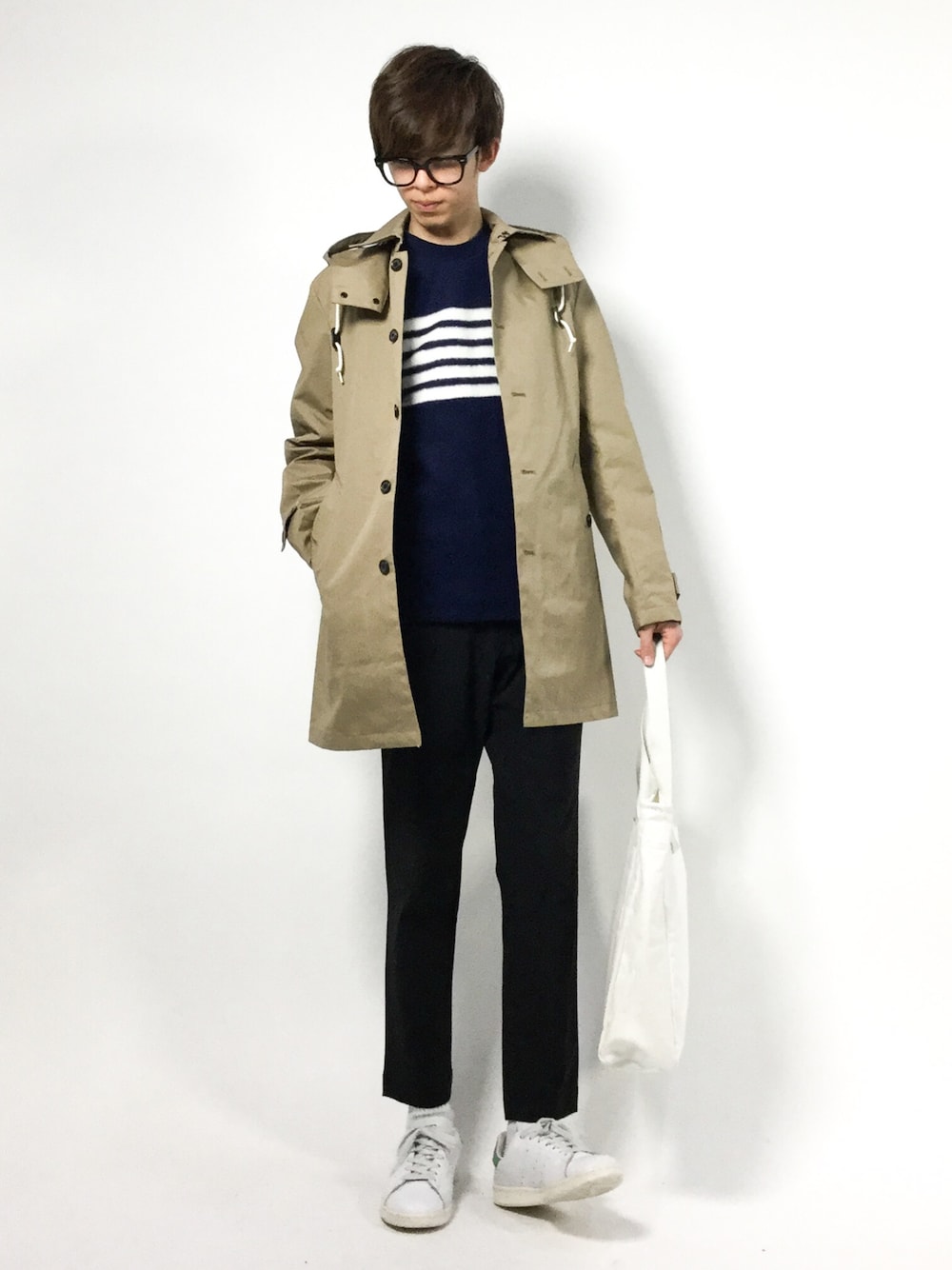 hiroのステンカラーコート「フード脱着ボンディングステンコート」を使ったコーディネート